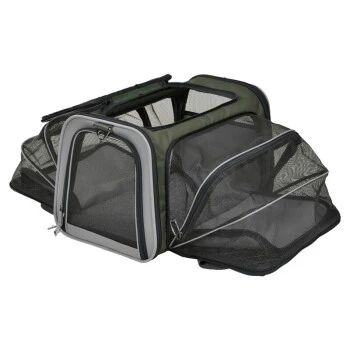Mit der Transporttasche Duke von MORE bietest du deinem Vierbeiner eine komfortable Transportmöglichkeit. Auf dem gemütlichen Fleecekissen lässt es sich besonders gut reisen. Die vielen Netzeinsätze sorgen für optimale Luftzirkulation im Inneren der Tasche. Die Tasche lässt sich ausklappen, indem die Reißverschlüsse aufgemacht werden.